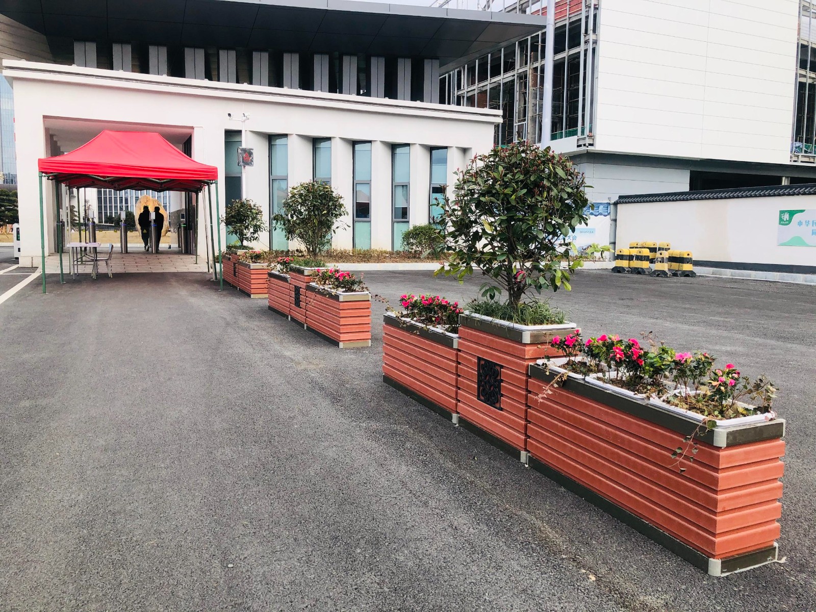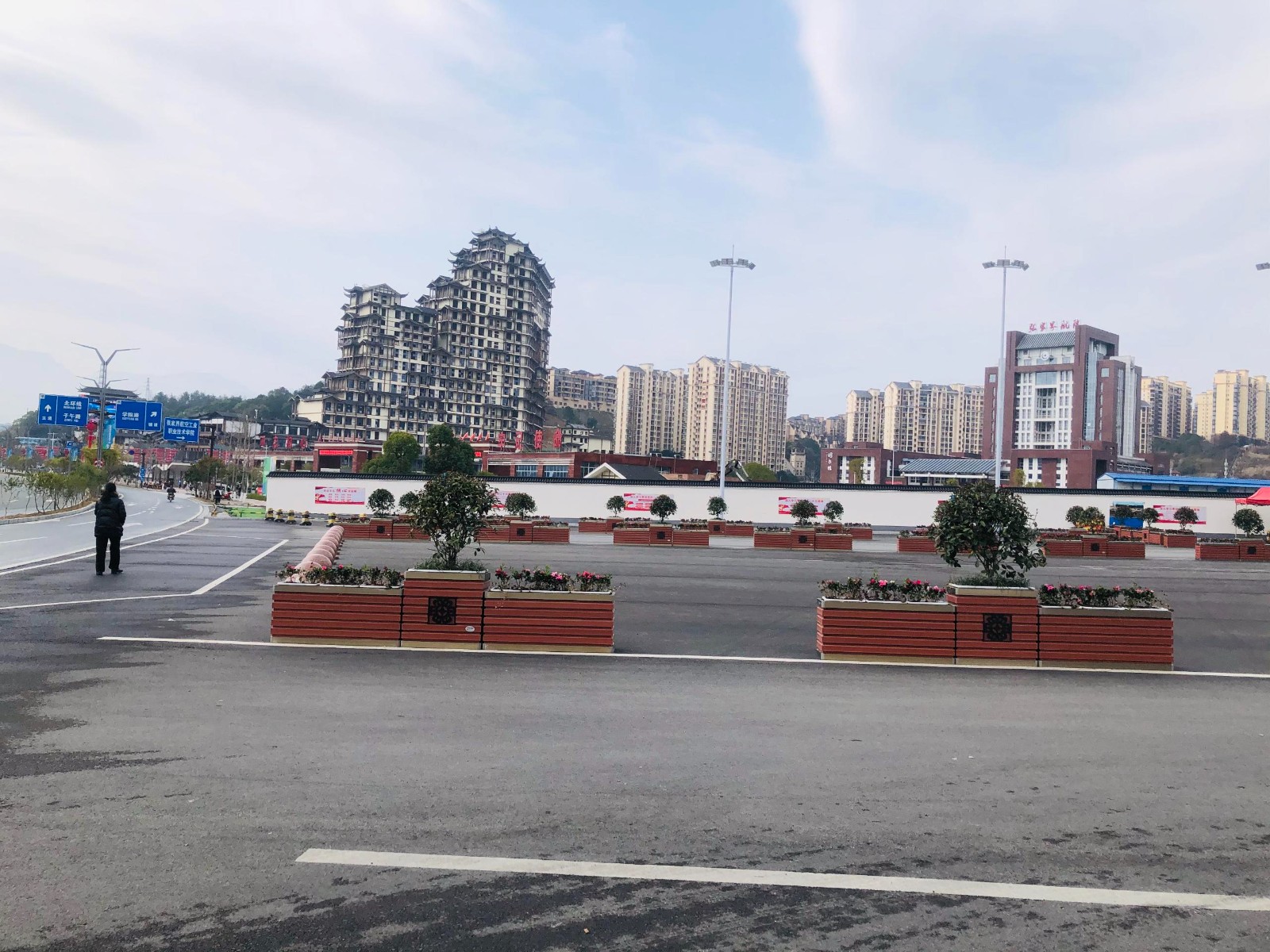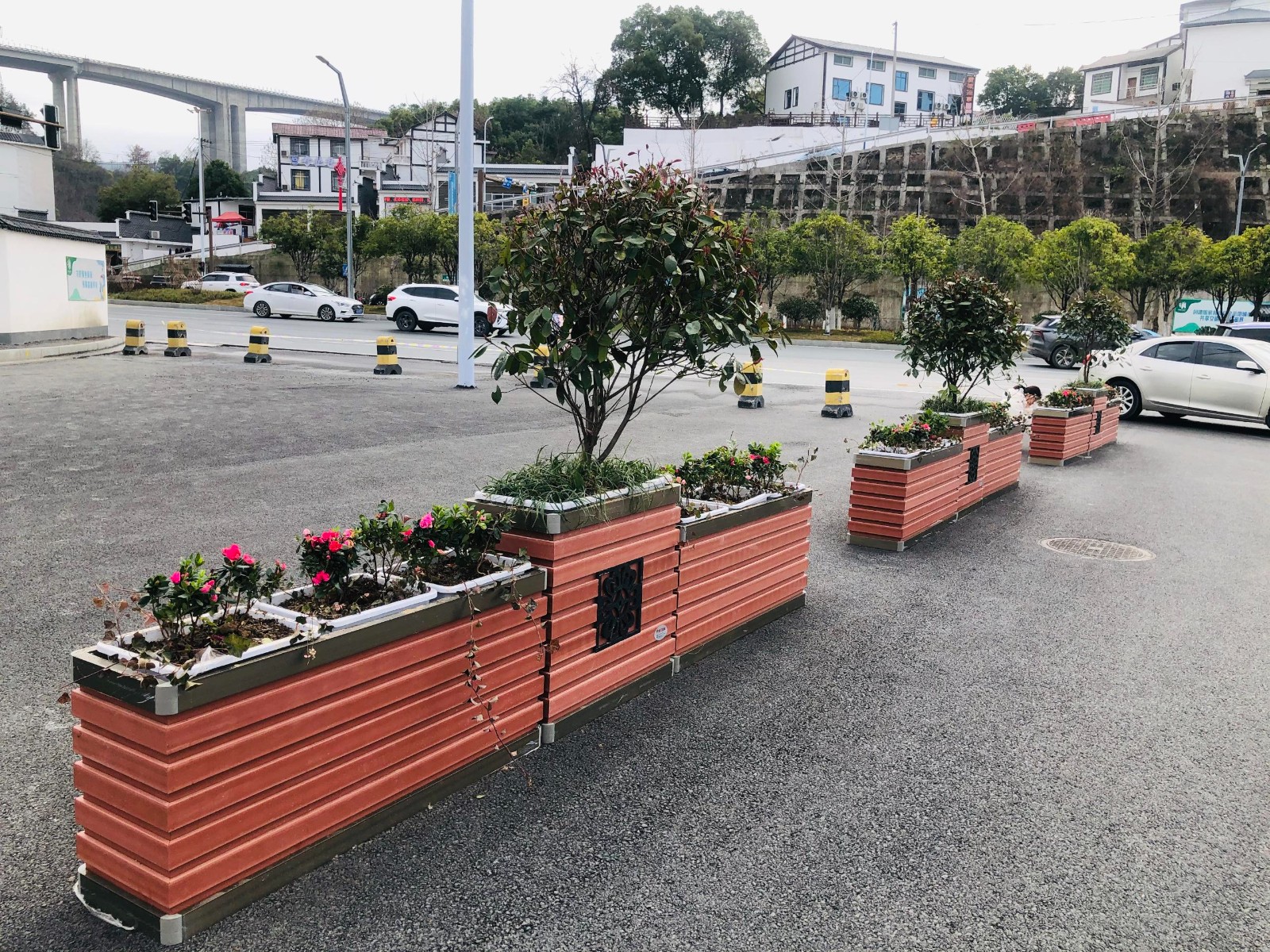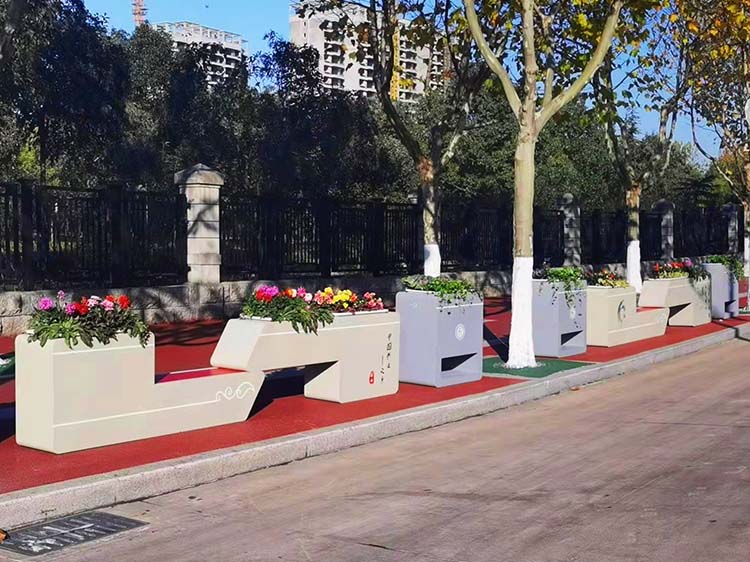 內(nèi)蒙古準(zhǔn)格爾旗城市足跡幾何體 方形雕花方形漏斗花箱側(cè)分帶廣場