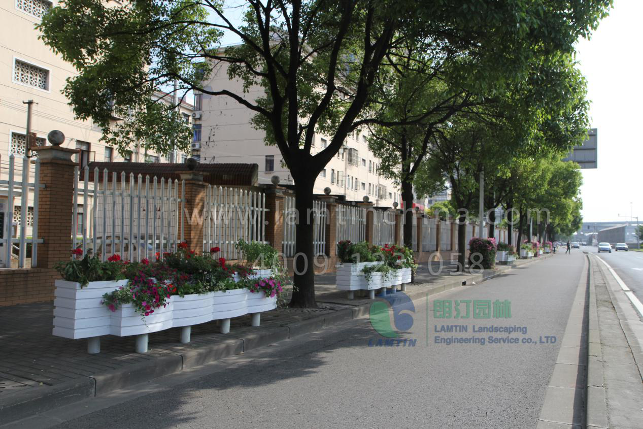花箱!流行風采隨著人們的戶外活動的頻繁進行,越來越多的室外景觀和室外的造景花箱,最近經(jīng)常會看到一些功能性和觀賞性都特別強的藝術(shù)花箱。比如街頭的藝術(shù)花箱,道路旁的花箱像城市的守衛(wèi)兵一樣站立在那里,很有秩序的隔離開了道路的分割線。護欄給人的單一和防阻性不在了。柔和的效果如同竹節(jié)般段段開花了。