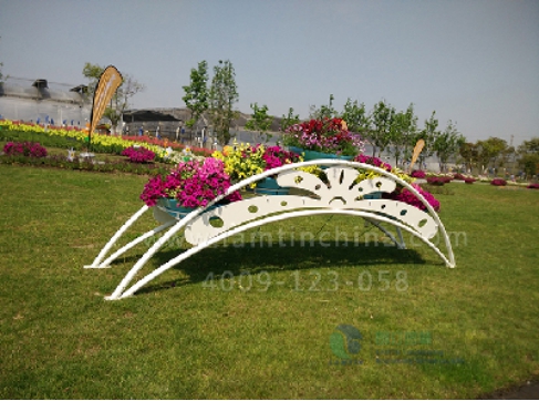我們?cè)诤?jiǎn)單的造型上做了一些改變,比如彩虹橋藝術(shù)鐵藝。采用的是立體鐵藝在加上鐵藝的層次的設(shè)計(jì),加上時(shí)令花卉的種植,整體的觀景效果能從平面化的綠化中提升到立體層次上。