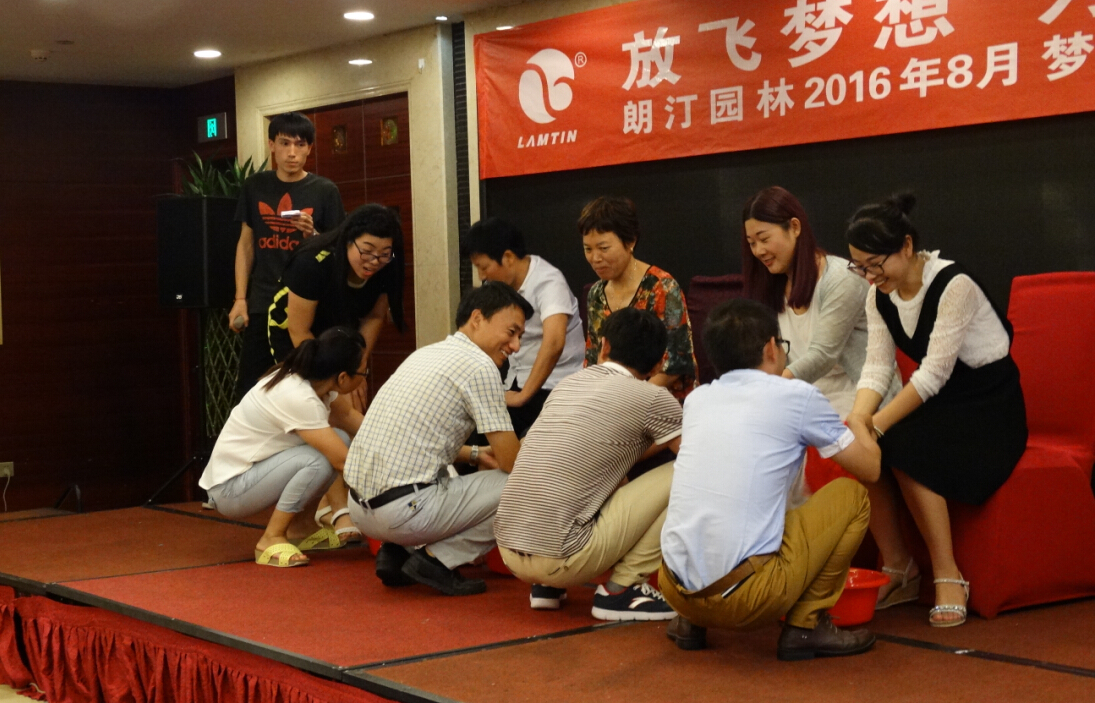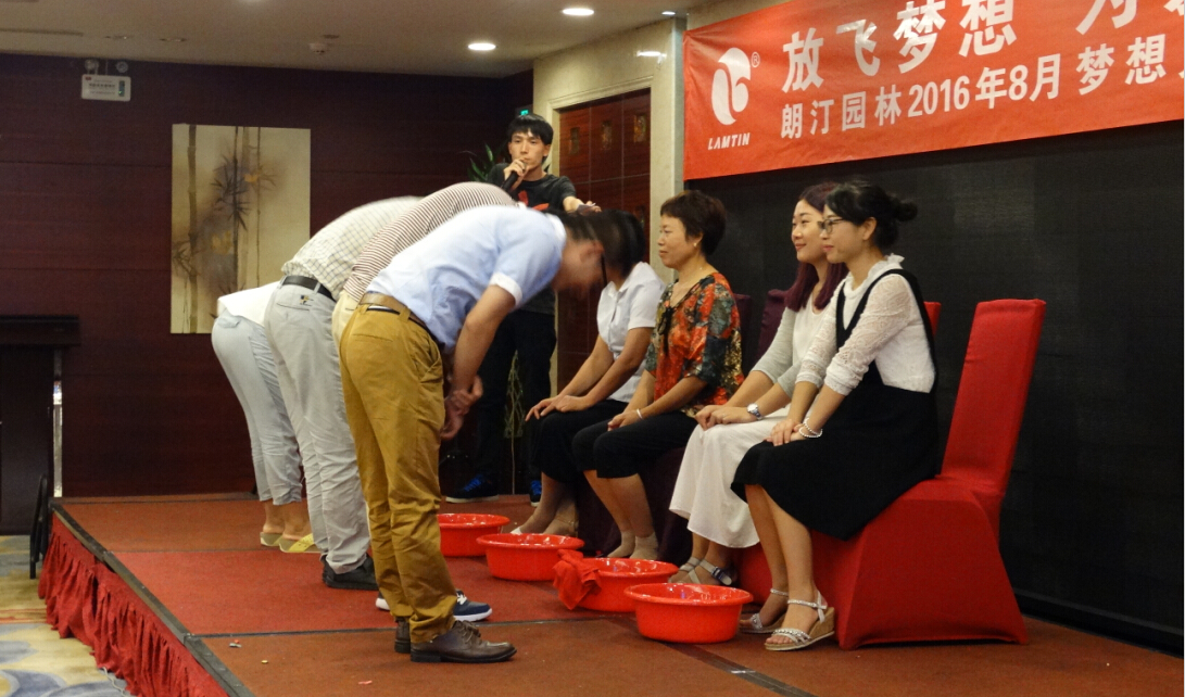 而感恩父母、家人環(huán)節(jié)將晚會(huì)徹底推向了另一個(gè)高潮,公司專程將圓夢(mèng)員工的父母、家人請(qǐng)到了晚會(huì)現(xiàn)場(chǎng),在感恩父母、家人環(huán)節(jié)中,我們的圓夢(mèng)員工親自為母親、愛(ài)人洗腳,望著母親老去的容顏,想著母親、愛(ài)人為自己付出的全部,他們眼睛里泛出了淚花,這淚光中充滿了感激之情,洗腳結(jié)束,圓夢(mèng)員工情不自禁的擁抱了自己的母親和愛(ài)人,現(xiàn)場(chǎng)員工也想起來(lái)了雷鳴般的掌聲,而后由朗汀園林公司代表為圓夢(mèng)員工母親及愛(ài)人獻(xiàn)上鮮花以表達(dá)公司對(duì)他們的感激之情。