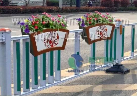 護欄綠化花箱將原本生硬的隔離護欄上掛滿各色的花卉,就這樣在隔離道路中央或是護欄上形成獨特的道路景觀。