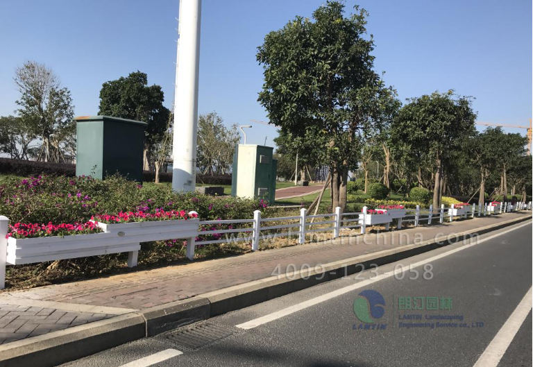 護欄藝術花箱結合的護欄一般含有PVC花箱護欄上的花箱采用新型PVC微發(fā)泡材料,該材料具有以下優(yōu)勢:
