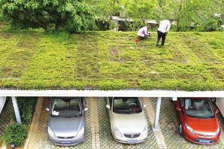 屋頂綠化是一項有效增加綠量的建筑施工。