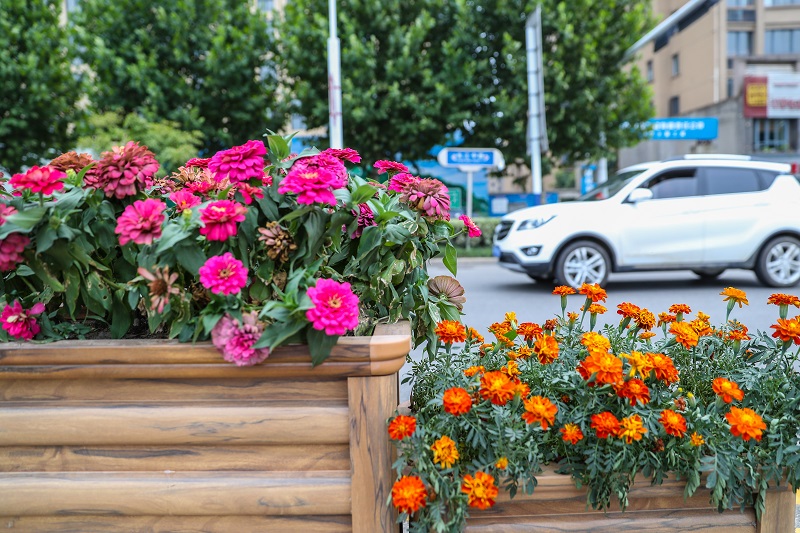 花團(tuán)錦簇,花香馥郁,一眼望去清新整潔,不僅給人耳目一新的感覺,還使整條街道更加綠意盎然,達(dá)到了綠化、美化、彩化相結(jié)合的景觀效果。