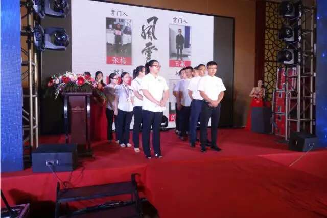 營(yíng)銷中心張梅、王敏掌門授銜儀式,緊接著由掌門給弟子王詠、周世進(jìn)授銜,最后營(yíng)銷中心全體人員宣誓。