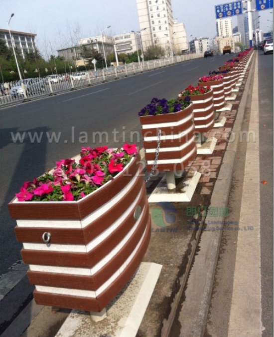 下面就講一下花箱與藝術的結合形式,把花箱做成藝術品,植物在此藝術品的陪襯下更讓人心曠神怡,例如下面這款花箱,它不僅是藝術與花箱的結合,還是節(jié)省材料的代表,花箱與護欄完美的結合,給人一種繽紛多彩的感覺。組成了一個充滿藝術的花箱。