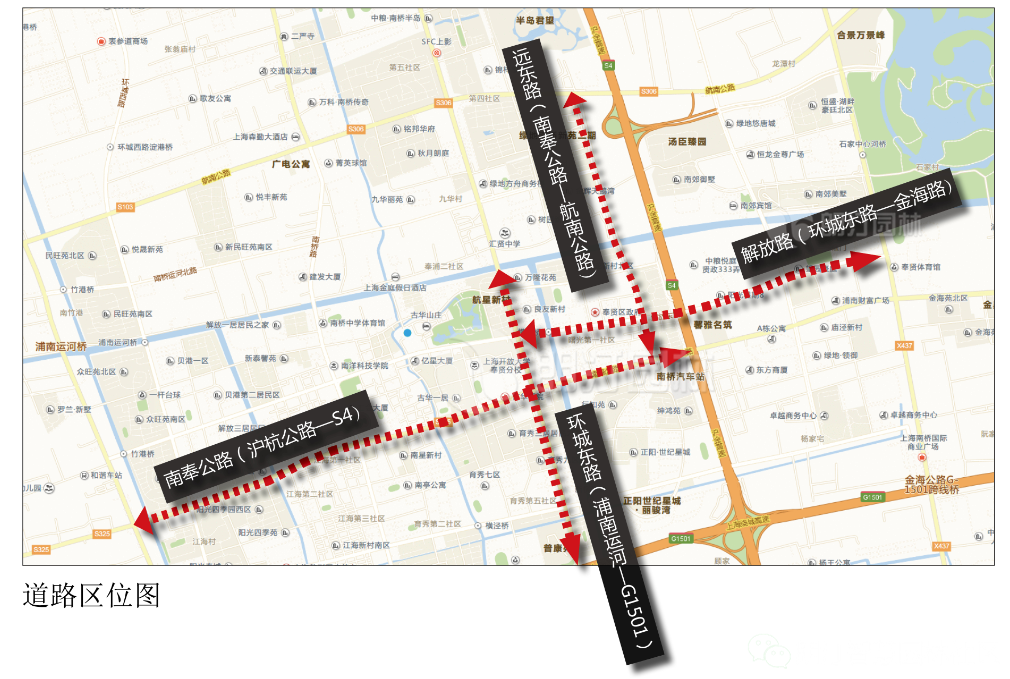 所選四條道路位于南橋鎮(zhèn)中心區(qū)位,緊鄰S4、G1501,是南橋鎮(zhèn)內(nèi)交通流量最大的道路之一。