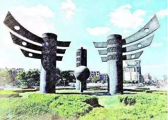 豐收門是銅陵西郊的銅雕塑,外形呈現(xiàn)豐字,所以叫豐收門。三根巨柱托舉著希望,三根巨柱托載著豐收,三枚古銅刀幣象征著物質(zhì)和精神所取得的財(cái)富。