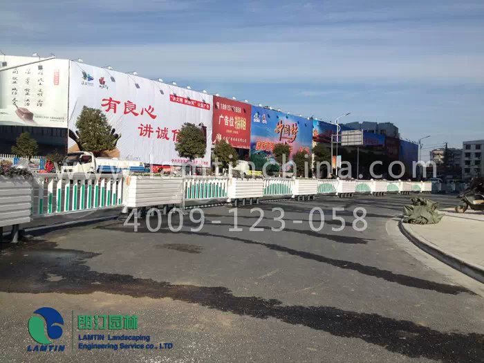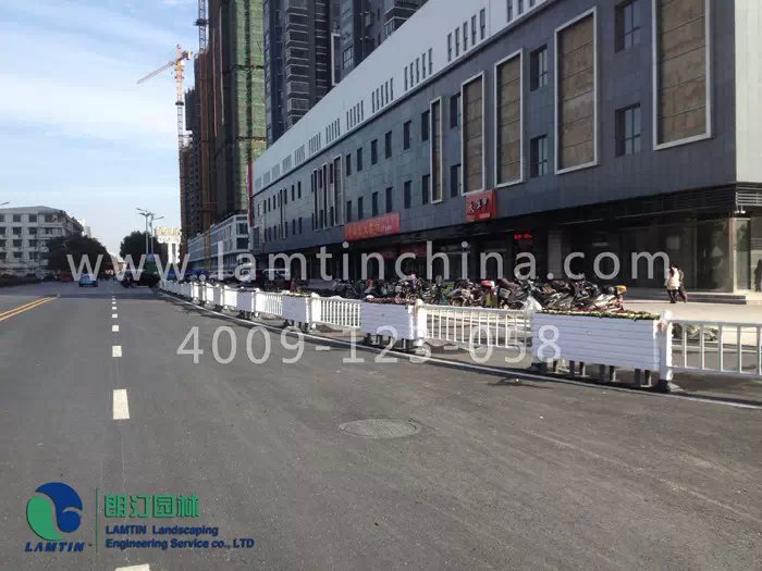2015年5月安徽朗汀園林于江蘇洪澤的道路花箱-長條藝術(shù)花箱工程正式完工。