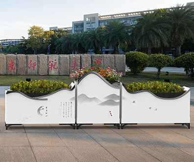 而這款直徑100cm的大花盆,更多用于廣場(chǎng)、道路、景區(qū)等場(chǎng)地做圓形大花柱。單個(gè)花盆高度30cm,可多層疊加使用,花盆底部用pvc管支撐,層層疊加,形成圓形花柱。種上顏色鮮艷的矮牽牛,三角梅,三色堇等花卉,還可以拼成各色圖案。