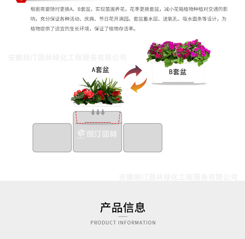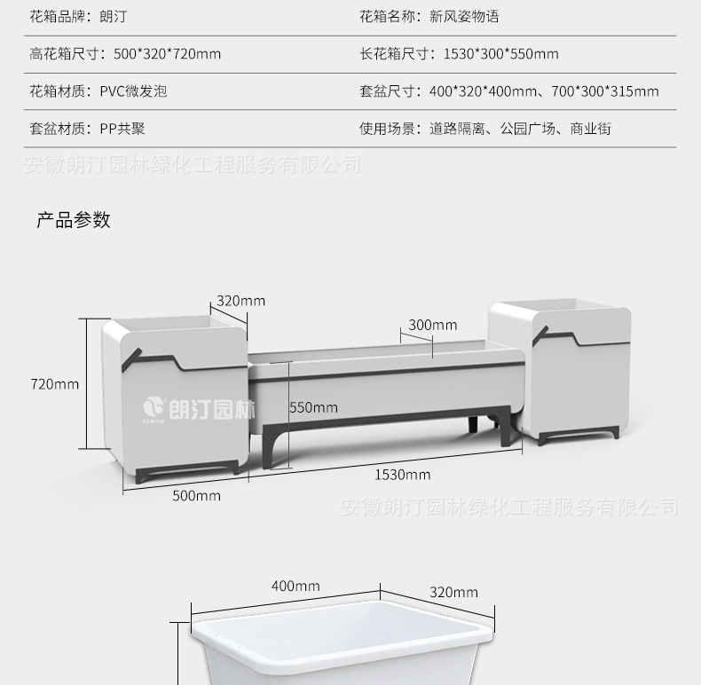 特點:PVC微發(fā)泡花箱,尺寸可以根據需求定制,造型塑造力強