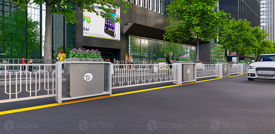尺寸: 機(jī)非花箱:1000*450*750mm,中央花箱: 950*400*850mm,護(hù)欄:3000*60*600mm(可定制)