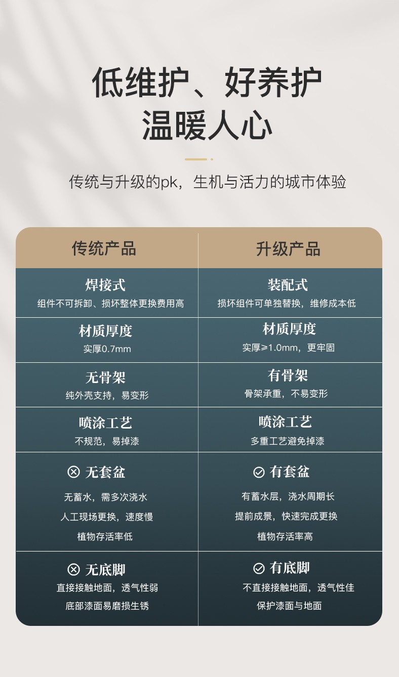 特點(diǎn):鋼質(zhì)座椅花箱組合,防腐防銹堅(jiān)固耐用,裝配式結(jié)構(gòu)便捷安裝,省時(shí)省力