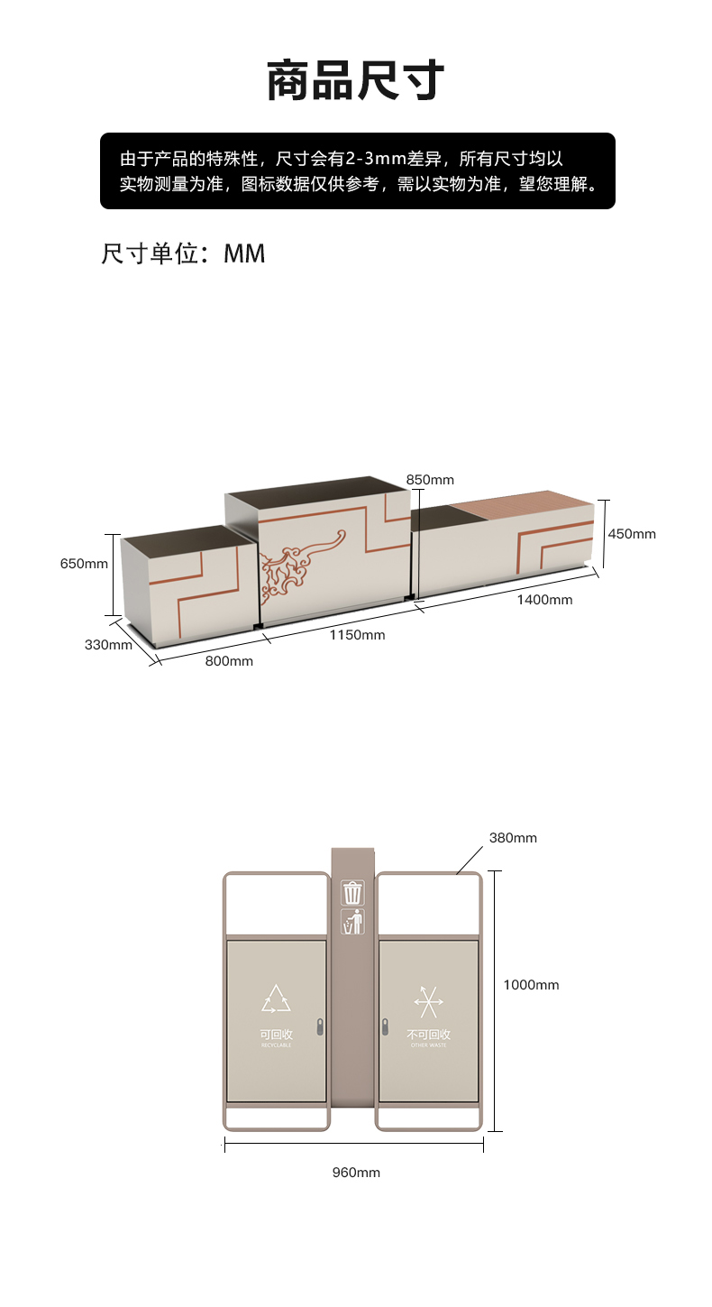 尺寸:高花箱:1150*400*850mm 中花箱:800*400*650mm 座椅花箱:1400*400*450mm