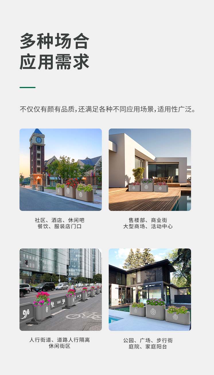 用途:商業(yè)街區(qū)隔離景觀花箱,小區(qū)綠化景觀花箱,隔離花箱,不銹鋼花箱